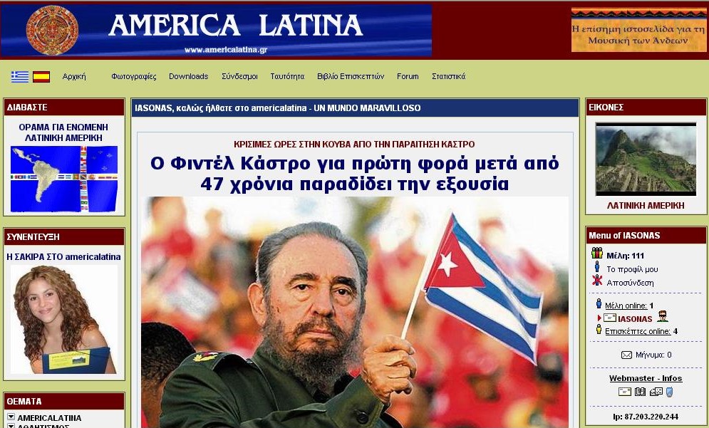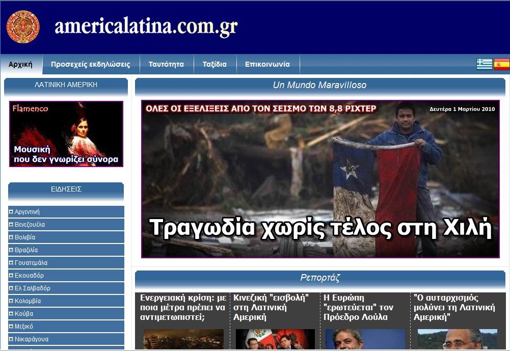 Άποψη της ιστοσελίδας americalatina.gr το 2006.