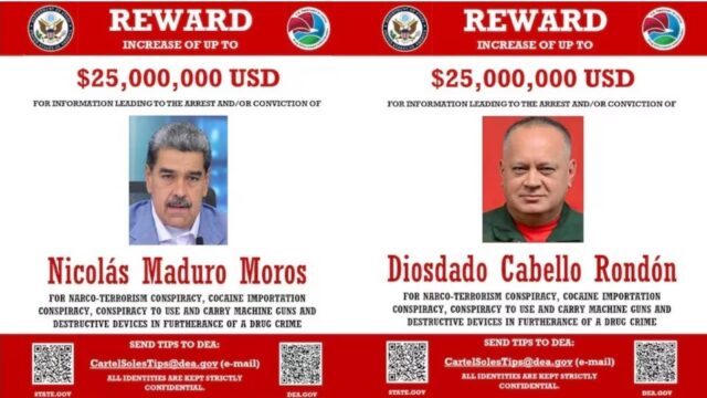 Το ποσό της επικήρυξης για τον Μαδούρο έφθασε τα 25.000.000 δολάρια, αντίστοιχο για τρομοκράτες όπως ο Οσάμα Μπιν Λάντεν