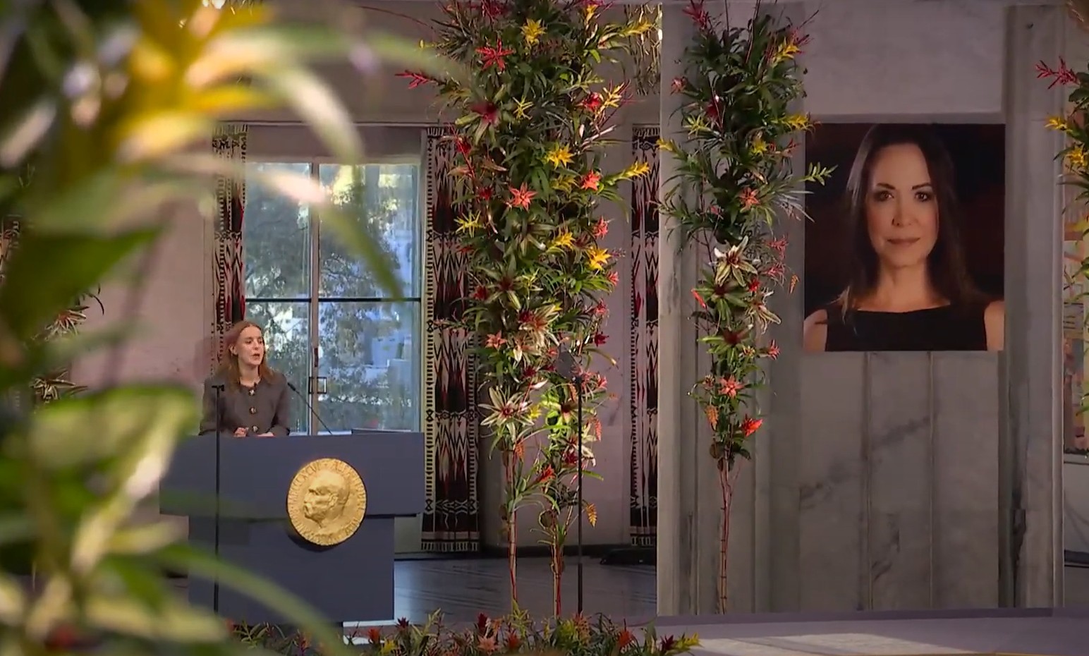Η αντιπολιτευόμενη ηγέτις έστειλε έναν λόγο που διαβάστηκε από την κόρη της κατά την απονομή του Βραβείου Νόμπελ Ειρήνης. Αναμένεται να φτάσει στο Όσλο τις επόμενες ώρες. Το Νορβηγικό Ινστιτούτο Νόμπελ ζήτησε την παραίτηση του Νικολάς Μαδούρο και κατήγγειλε τους δεσμούς του με τη Ρωσία, την Κίνα, την Κούβα, το Ιράν και την τρομοκρατική οργάνωση Χεζμπολάχ.