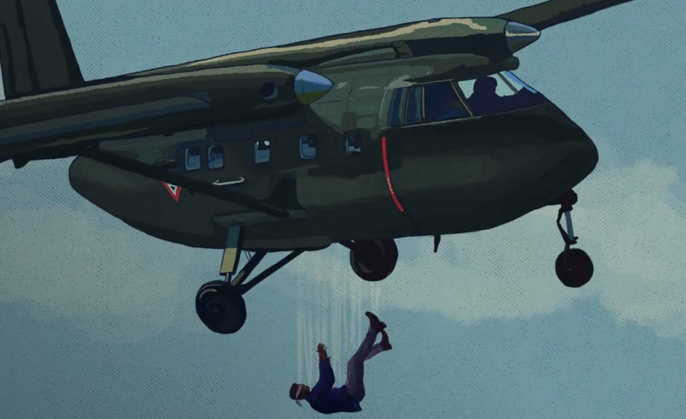 Αναπαράσταση των “πτήσεων του θανάτου”. Λήψη από το βίντεο ντοκιμαντέρ με τίτλο “Vuelos de la muerte”, una reconstrucción audiovisual.