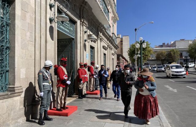 Ιθαγενείς έξω από το Προεδρικό Μέγαρο στη Λα Πας. Φωτό: Americalatina.gr