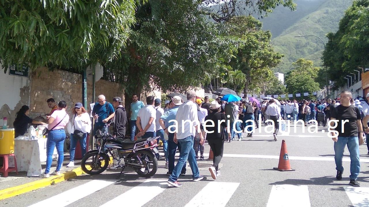 Πολίτες περιμένουν να ψηφίσουν έξω από εκλογικό κέντρο στην περιοχή Αλταμίρα του Καράκας. Φωτό: americalatina.gr / Luis Roberto Mendoza.