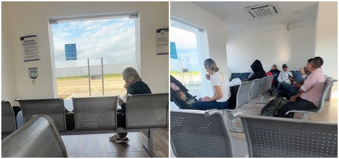 Η αίθουσα αναμονής στο εσωτερικό του μικρού αεροδρομίου. Φωτό: Στιγμιότυπα από βίντεο του λογαριασμού TravelerColombia Tik Tok.